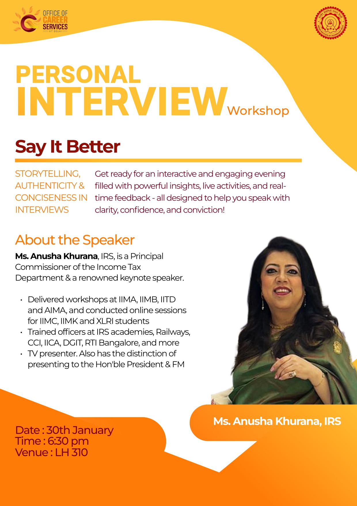 29 Jan 2026 Personal Interview Workshop - Ms. Anusha Khurana, IRS